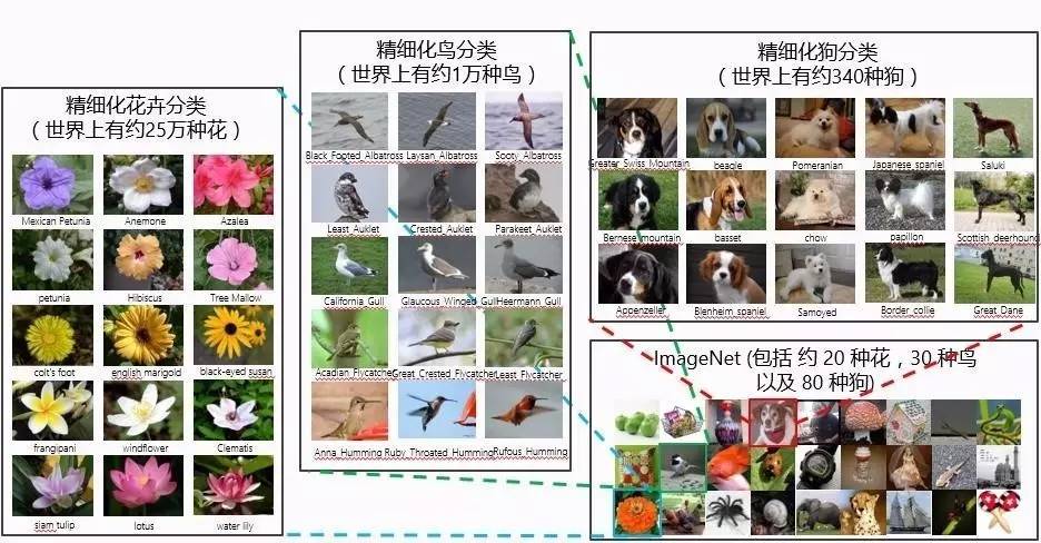 在日常生活中,我们可以很容易地识别出常见物体的类别(比如:计算机、手机、水杯等),但如果进一步去判断更为精细化的物体分类名称,比如去公园游览所见的各种花卉、树木,在湖中划船时遇到的各种鸟类,恐怕是专家也很难做到无所不晓。不过,也可见精细化物体分类所存在的巨大需求和潜在市场。