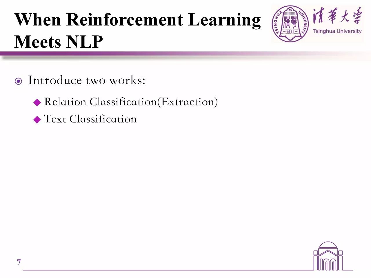 在关系抽取任务中,尝试利用强化学习,解决远程监督方法自动生成的训练数据中的噪音问题。在文本分类任务中,利用强化学习得到更好的句子的结构化表示,并利用该表示得到了更好的文本分类效果。本次分享的两个工作均发表于 AAAI2018。