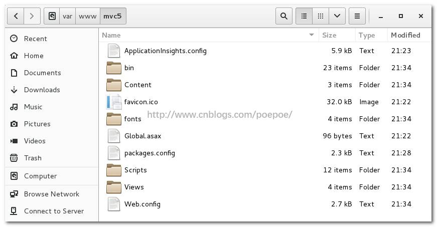 7.将ASP.NET MVC5应用程序的发布文件拷贝到/var/www/mvc5/
