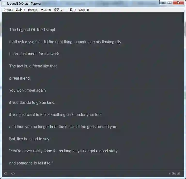 我们先绘制英文文本的词云图,因为它相对简单一些。这里以《海上钢琴师》这部电影的剧本为例。