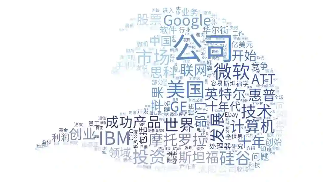 1[('公司', 1462), ('美国', 366), ('IBM', 322), ('微软', 320), ('市场', 287), ('投资', 263), ('世界', 236), ('硅谷', 235), ('技术', 234), ('发展', 225), ('计算机', 218), ('摩托罗拉', 203)...]