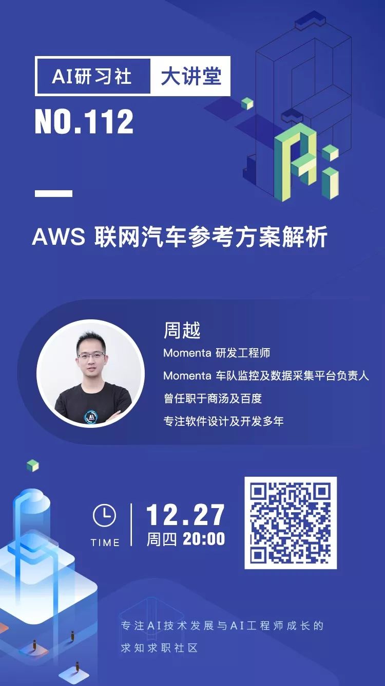 不要忘记今晚还有Momenta研发工程师周越带来的【AWS 联网汽车参考方案解析】分享哦!