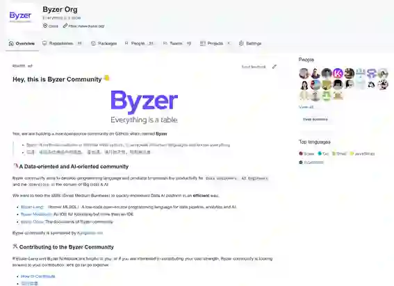 我们相信只有在 编程语言层面 进行革新,才能从根本上提高数据平台落地和 AI 工程化的效率。Byzer 作为一门低代码的开源编程语言, 可以在语言层面将数据处理链路、AI 工程中的复杂操作以及权限管控进行抽象,同时降低编程语言的学习成本和上手成本,从而帮助企业真正将效率提升上来。