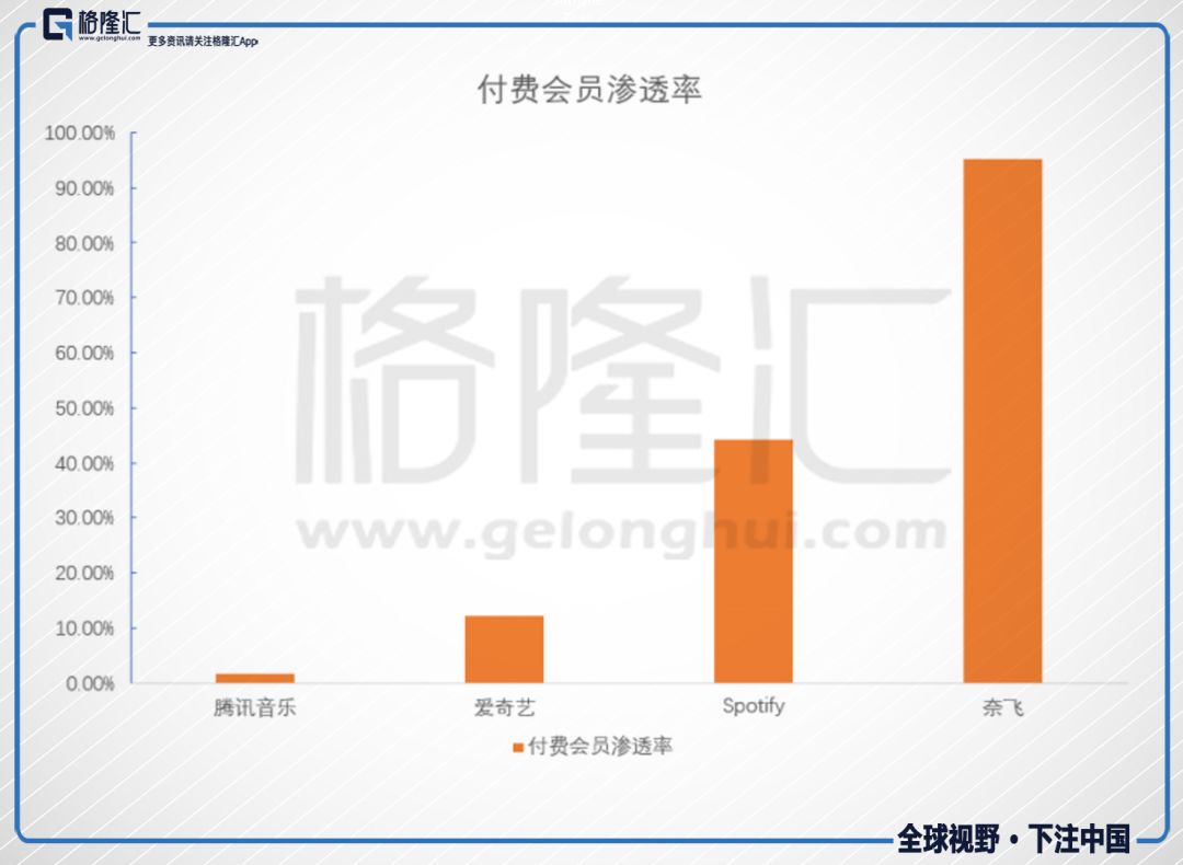 2、腾讯的变现方式多样,付费音乐、秀场、转授权、广告、游戏等都能创收,其中音乐包月只是很小的一部分收入。这一点上很有中国特色,中国用户的付费习惯还未完全形成的背景下,腾讯音乐不得不通过各种其他方式实现流量变现。腾讯音乐虽然用户数高达7亿,但其付费用户仅1200万人,对比之下,拥有1.7亿用户的Spotify却拥有7500万付费用户。况且单一付费用户的价值也差很远,QQ音乐会员月费仅8/12元,是Spotify 的大约1/9~1/6。