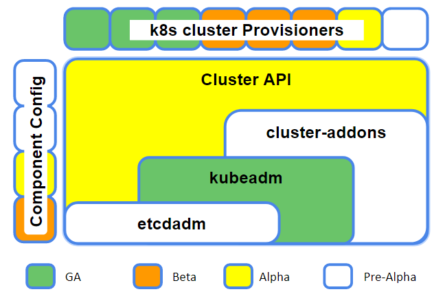 随着 Kubernetes 越来越多地被用在多云、混合云部署场景,集群生命周期管理的标准化一直是众人期待的一大方向。自 v1.13 版本 GA 之后,Kubeadm 的改动主要聚焦在优化使用体验上。而集群生命周期整体流程的打通,特别是实现跨平台的集群管理,配合日渐活跃的 ComponentConfig 以及 Cluster API 两个新项目,相信很快会有实质性的进展。