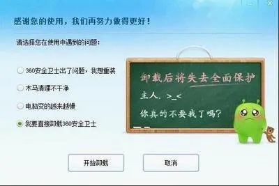 在网络环境并不安全的情况下,这种方式其实能够让用户担心是不是真的在卸载之后,电脑就不安全了?以此达到一个挽留的作用,并且加深了印象,如果将来电脑出现病毒,用户可能会重新想起这个软件。