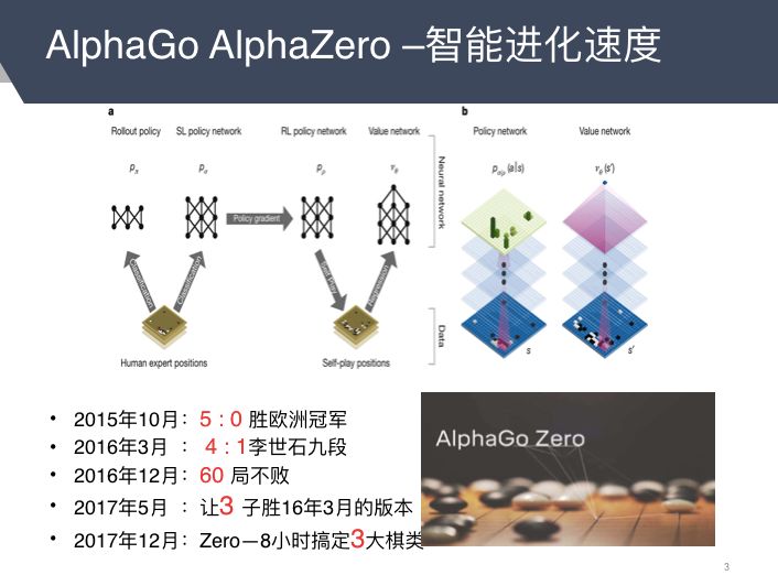 雷鸣首先从从AlphaGo到AlphaGo Zero,来阐述人工智能的演进速度。