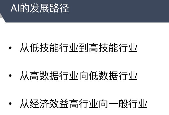 有数据的行业走的会快,没数据的行业走的会慢。以阿里巴巴做金融为例,因为金融业有巨大的数据,无数据则无智能。