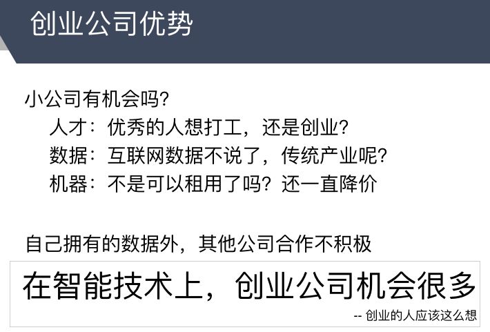 同时,大家很多时候害怕BAT,这是AI创业公司常见的心态。