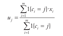 Step-3:重新计算每个(有变化)聚类的均值(中心对象),即