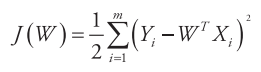 其中Xi和Yi分别表示训练集中第i个样本的自变量和因变量,m表示训练集的个数,前面乘上系数(1/2)是为了求导的时候,使常数系数消失。