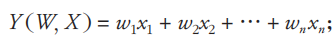 线性回归模型假设自变量(也称输入特征)和因变量(也称目标值)满足线性关系。为了便于叙述,取自变量为X (x1, x2, …, xn ),因变量为Y,训练参数为W (w1, w2, …, wn )。