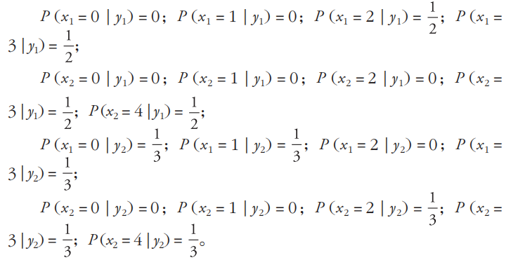 由于P (y1 | (x1 = 3;x2 = 4)) > P (y2 | (x1 = 3; x2 = 4)),故测试用例的类标是y1,即yes。