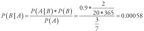 用贝叶斯的理论求解此问题,假设A事件为“狗在晚上叫”,B为“盗贼入侵”,则: