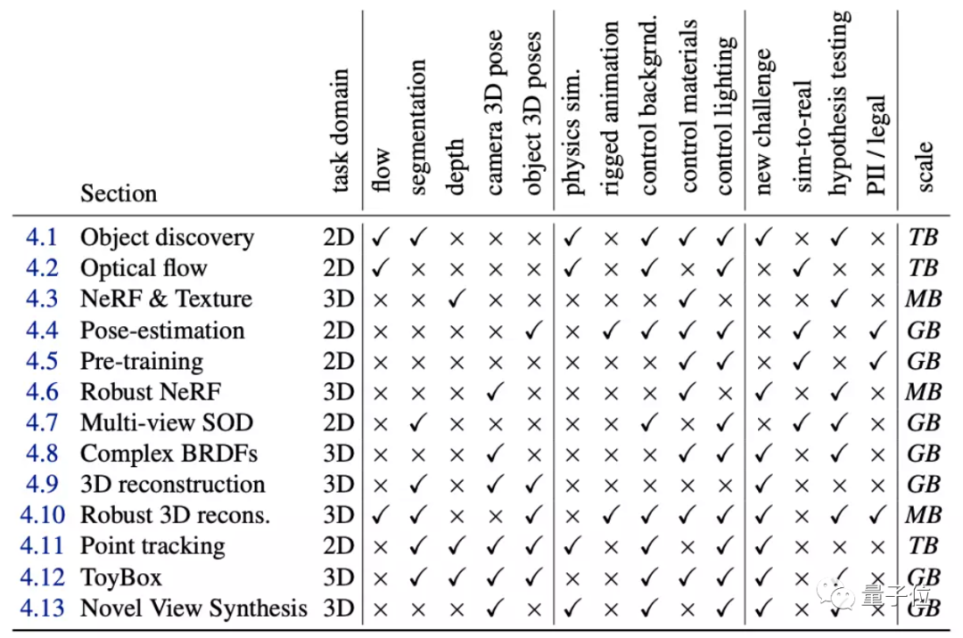 这也使得Kubric支持生成13类CV任务所需的图像数据,具体包括光流、NeRF、姿态估计、3D重建等。