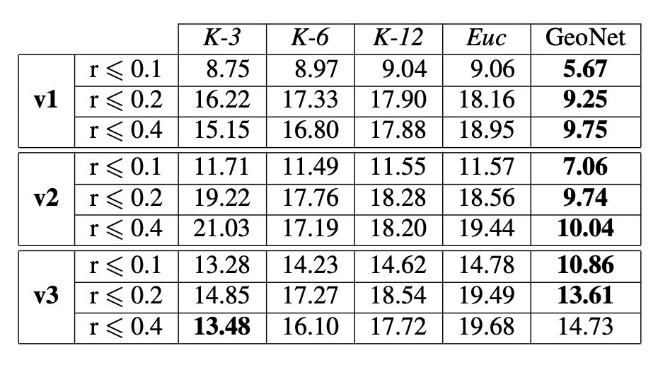 为证明这一拓扑学结构的有效性,本文借助融合方法把 GeoNet 与当前最优的点云分析 baseline 或 backbone 整合为一种计算方案,在点云上采样、法向量估计、网格重建及非刚性形状分类等几何学及语义任务上的实验结果表明,GeoNet 性能优于当前最佳同类方法。