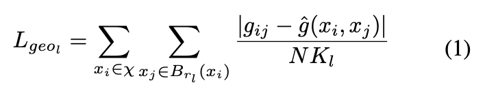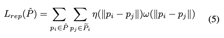 (3)中第二项是一个排斥损失函数,通过惩罚相近的点对来提升统一的空间分布:
