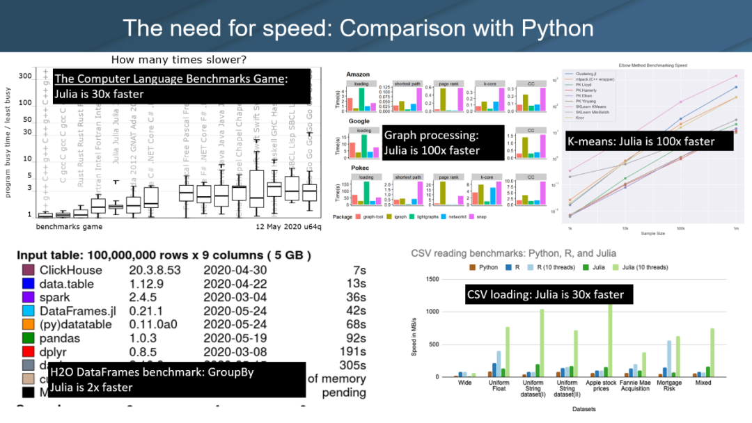 很多人可能会问:我 Python 用得好好的,为什么还要考虑 Julia?对此,Shah 表示,「Python 是一种解释型语言,尽管它有一个令人惊叹的生态系统,但在性能方面仍有许多不足。」