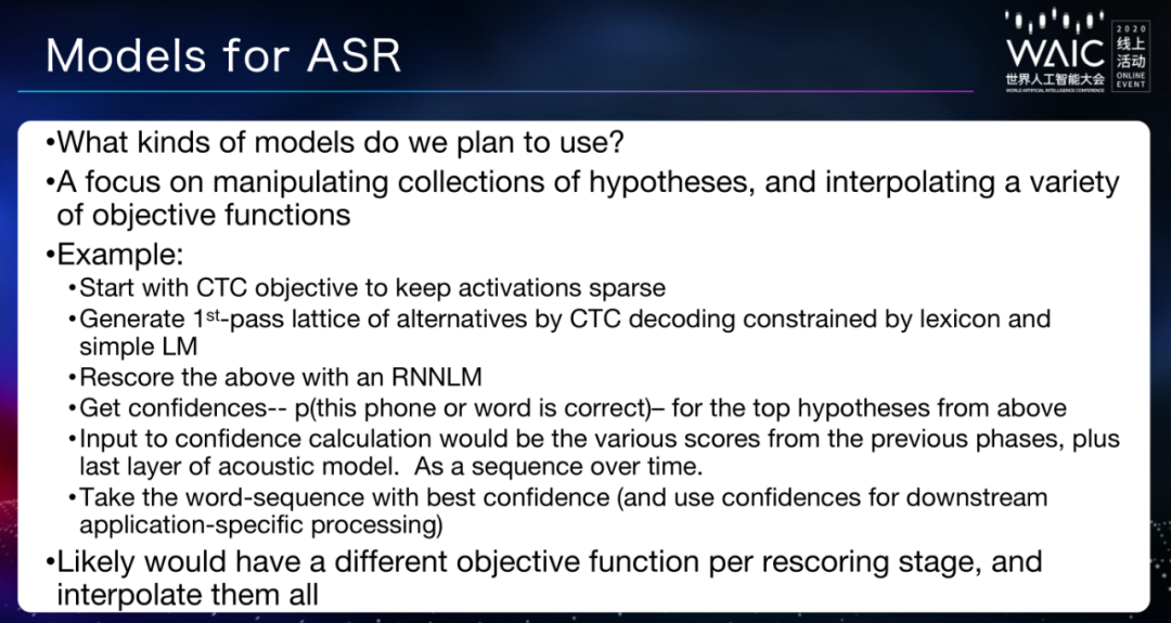 在 WAIC 开发者日上,Daniel 介绍了开发新一代 Kaldi 的思路、时间线和进度。