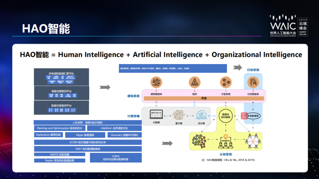 在演讲最后,吴信东向大家展示了明略科学院开发的 HAO 图谱系统,以及从数据图谱到 HAO 图谱的演化。
