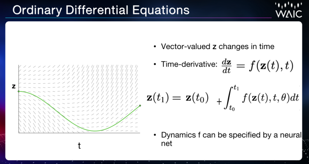 微分方程的基本思想是把系统建模为具备某个状态 z,而建模这一系统的方式是构建某个函数 f,f 表示系统的情况及其在当前状态下随时间的变化率。