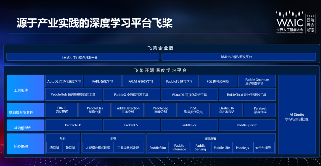 而这个平台的基础底座就是百度的飞桨深度学习平台。飞桨为 AI 应用生产提供了核心框架、工具组件、服务平台等全方位的支撑。为满足企业需求开发的飞桨企业版可以提供更全面和强大的功能,更易用的可视化界面,预知更丰富的场景模型,提供更强化的安全权限管理。