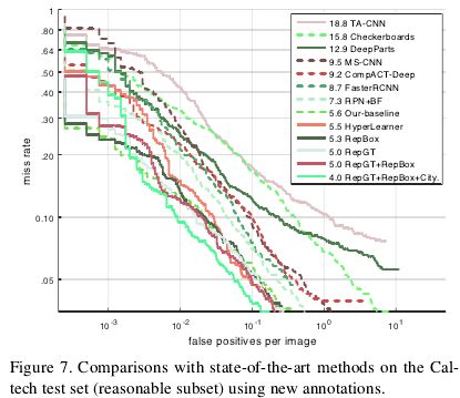 本文的detector采用的是改进版的Faster R-CNN,以保证对比的公平性,验证实验是在CityPersons验证集上做的。对比实验是在Caltech测试集上做的,训练和测试均采用新标注。
