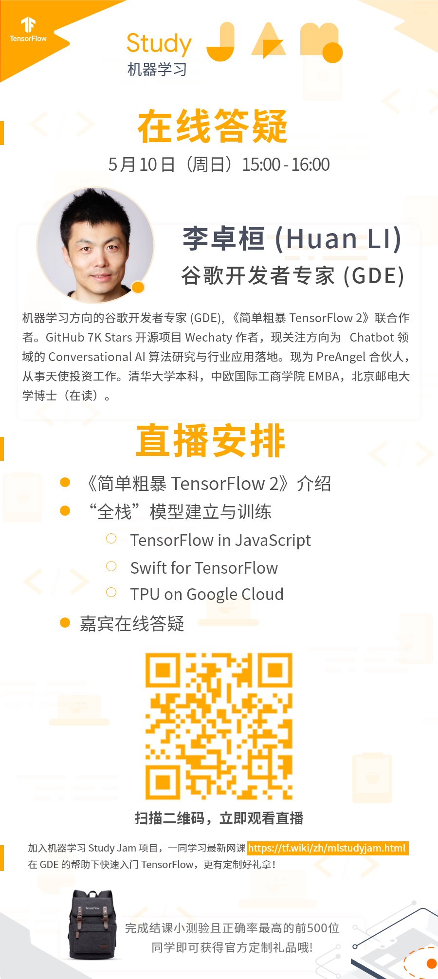 本次答疑的微信回顾和后续回放链接也会在 TensorFlow (ID: TensorFlow_official) 的后续推送中公布,请大家及时关注我们,不错过每一条干货情报~