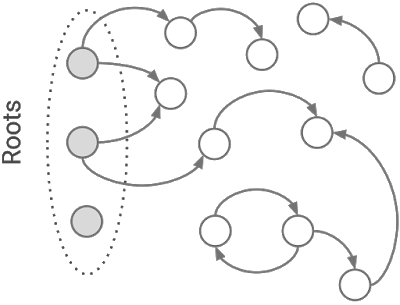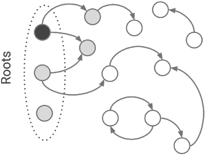 标记是 V8 Mark-Compact GC 工作的一个阶段。在这个阶段中,收集器发现并标记所有活动对象。标记从一组已知的活动对象开始,如全局对象和激活函数,即所谓的 roots,收集器将 roots 标记为活动的对象,并顺着指针去寻找发现更多的活动对象。收集器继续标记新发现的对象并跟随指针移动,直到没有发现更多的对象要标记为止。在标记结束时,所有无法让应用程序访问的未标记对象,都可以安全地回收。