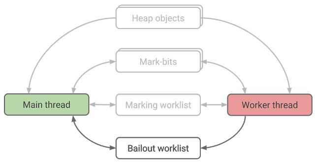 以下两节将讲述如何在 V8 中添加对平行标记和并行标记的支持。
