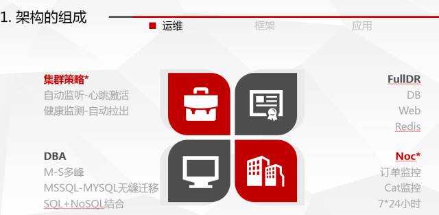 总体来说,携程的架构由三部分组成:运维、框架、应用。