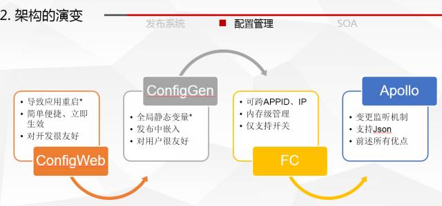 其次值得一提的就是配置管理,携程的配置管理大体也经历了四个时代: