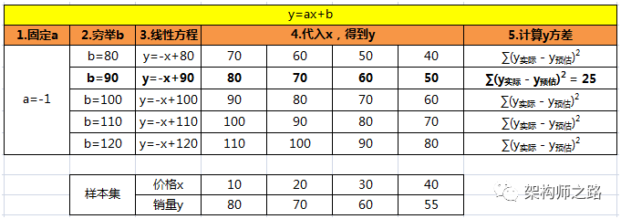 商家卖鞋,可利用历史上每个季度鞋的定价x与销量y,来预估“定价与销量的关系”(y=ax+b),以辅助对鞋子进行最佳定价。