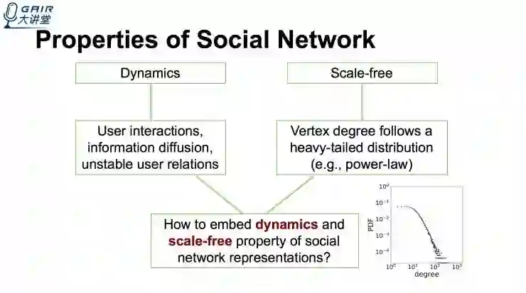 如何用合理的方式表示数据是网络挖掘的关键问题,表示学习的目的是为网络中的每一个节点分配一个某个线性空间中(比如欧式空间)的向量,使得这些向量能够保持原来网络的结构信息。接下来的分享内容讨论表示学习的诸多问题,比如在欧式空间中的无标度网络的表示学习,讨论是否保持网络的无标度特性,并对此优化以提高向量的表示能力。我们同时还讨论如何处理网络时序序列,使得表示向量能够保持时序信息。