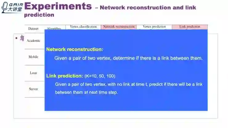 基于以上,无标度网络结构重建和边预测都取得了很好的试验效果。更多详情请点击阅读原文观看 GAIR 大讲堂视频回放。