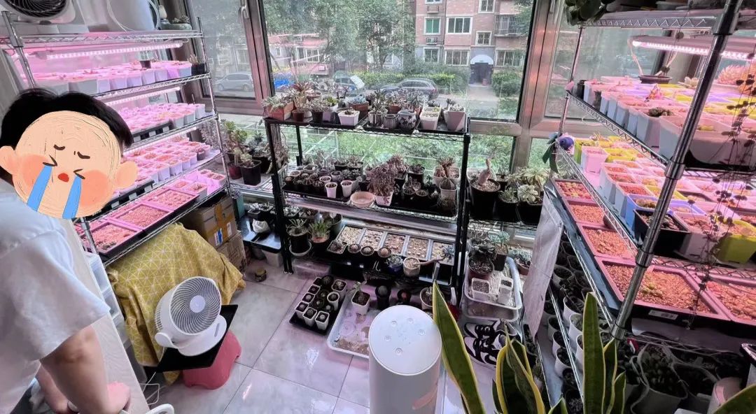 一个30多岁的金融行业人士,在这寄养了十几平米,算起来有几千盆多肉。“他就是工作压力大,他觉得唯一解压的事情就是买多肉。”他还觉得自己是一个没有安全感的人,每个品种至少要保存两盆以上,这样死了一颗还能剩。