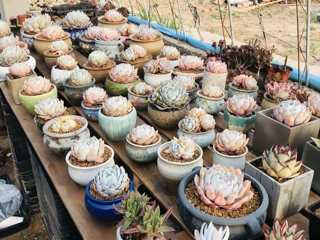 多肉迷都有类似的心路历程——要么摆一两盆,要么就是几十、几百盆。等家里阳台放不下,或无暇照顾,他们就会寄送到大棚。