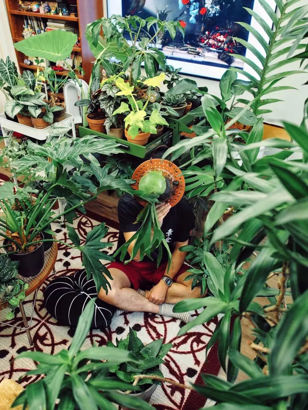 他一下着了迷。在70平的小屋里,他把绿植铺满了所有平台,窗台、茶几、电视柜,大小植物排布地错落有致,一年后,家里已经摆了200+的绿植。