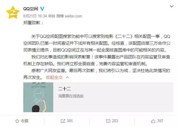 1. 《二十二》截图被做成表情包,QQ空间发布道歉声明