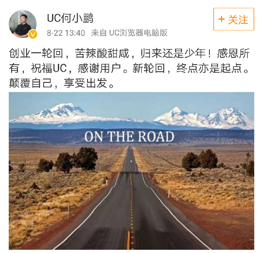 2. UC联合何小鹏宣布在阿里退休,或二次创业