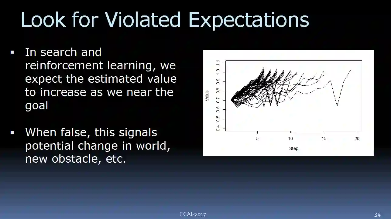 比如,这是我们的预期价值函数,这是解决问题的步骤。通常情况下,我们在玩游戏或者按计划执行时,我们是在朝上走的,最大限度的让价值最大化。当然,当我们做的不好的时候,我们可以看到有些曲线的轨迹并不是朝上走的。看起来就像我们脱离了轨道,这或许意味着我们的模型存在一些问题。