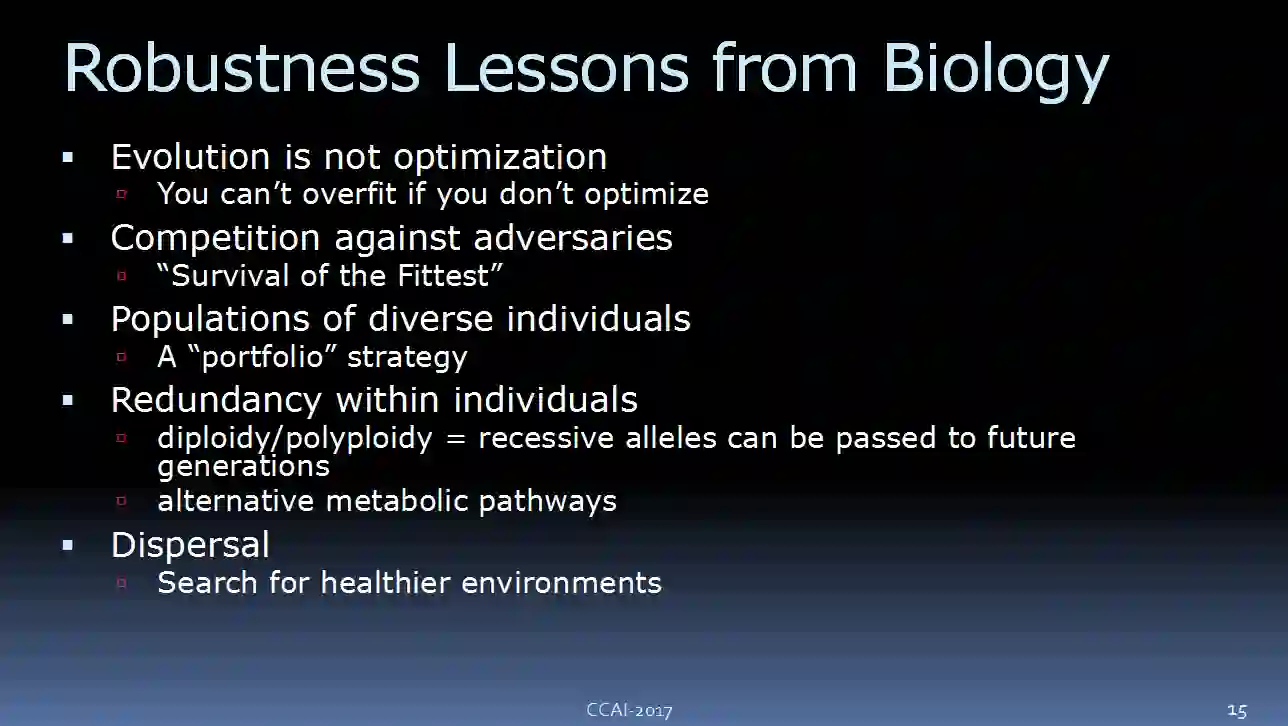另外,我们在每个人内部也是冗余,比如说每个基因都可以分为隐性和显性,这样我们可以把自身没用到基因传给未来的子孙后代,让我们得以保持基因的多样性。我相信,生物学给了我们很多关于强健的 AI 系统的启发。