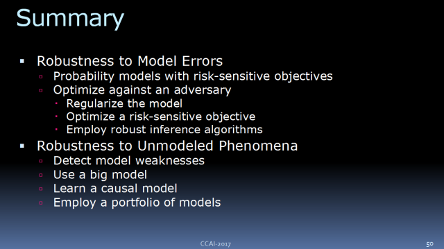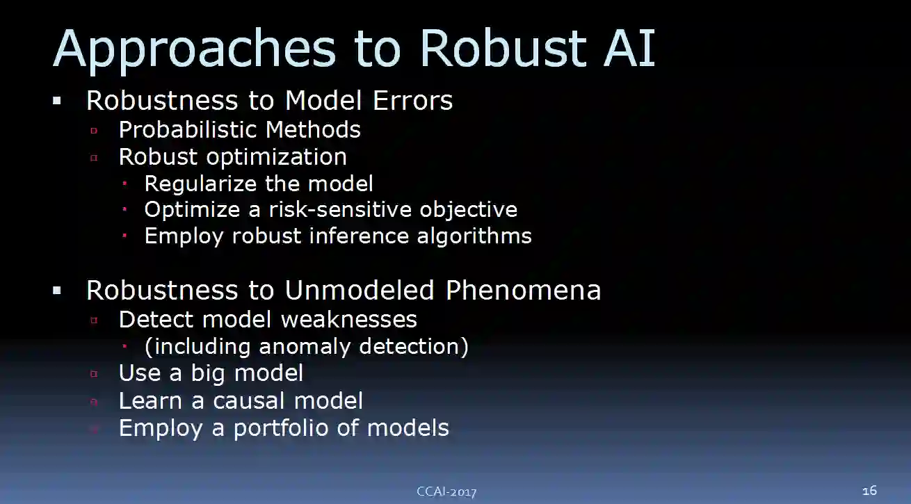 首先,我会讲一讲我们对于强健 AI(robust artificial intelligence)的需求、其后的目的何在。然后,我要谈一下,在模型不完整的时候,我们的 AI 系统需如何来正常工作。