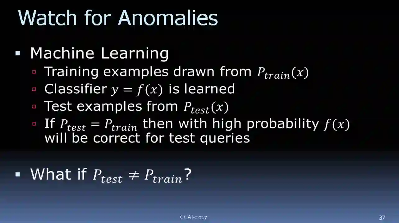 当然,你肯定听说过领域适应(Domain Adoption)和迁移学习。我要讲的可能是稍微简单一点的问题,仅仅只需要检测测试数据是否与训练数据不同,这个例子是基于我在计算机视觉领域的一项研究工作。