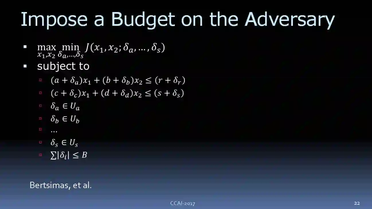 根据 Bertsimas 在 MIT 的工作,这里有一个很重要的思想:给 adversary 加一个 budget。