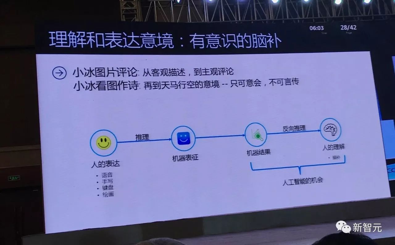 下面这张Slide,沈向洋在演讲中介绍说,可能是他这次演讲中“最重要的一张”。现在绝大部分的人工智能研究都只做到了机器结果这一步,但是,真正有意义的、对人类有贡献的,还是要反向推理。