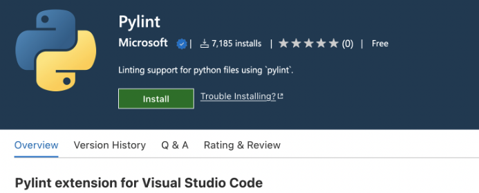 Pylint 扩展使用语言服务器协议来提供对 linting 的支持,并附带了最新版本的 pylint(当前版本为 2.13.4)。值得注意的是,微软所发布的 Pylint 扩展,与 Python 开发者广为人知的 pylint 仍然有很大的不同。