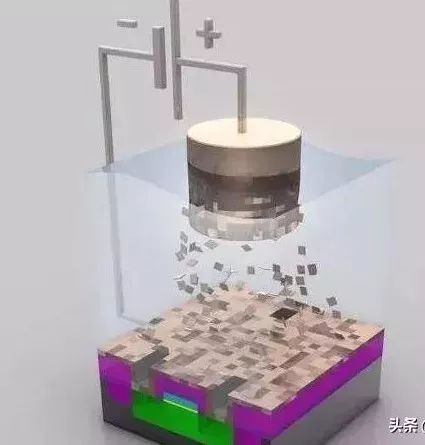 在晶圆上电镀一层硫酸铜,将铜离子沉淀到晶体管上。铜离子会从正极(阳极)走向负极(阴极)。