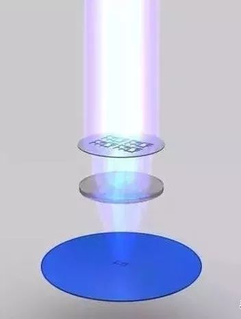 光刻胶层随后透过掩模(Mask)被曝光在紫外线(UV)之下,变得可溶,期间发生的化学反应类似按下机械相机快门那一刻胶片的变化。掩模上印着预 先设计好的电路图案,紫外线透过它照在光刻胶层上,就会形成微处理器的每一层电路图案。一般来说,在晶圆上得到的电路图案是掩模上图案的四分之一。