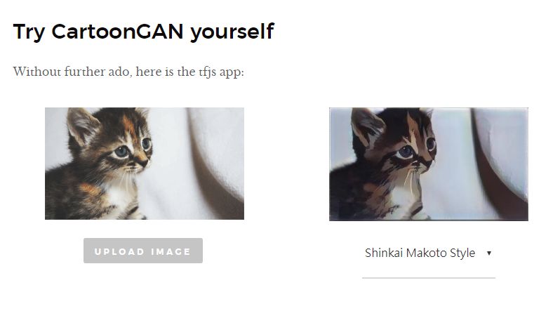 在浏览器上使用TensorFlow.js对图像进行卡通化,无需进行任何设置